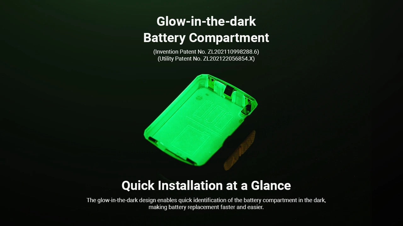 The glow-in-the-dark battery compartment means you can swap power sources during a midnight aid station stop without fumbling with a headlamp or phone light.
