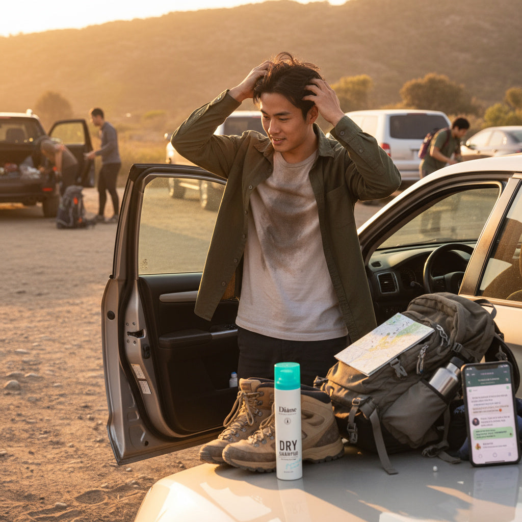The dry shampoo that requires no rinsing - instantly absorbs sweat, oil, and odour perfect after workouts, commuting, or outdoor activities.