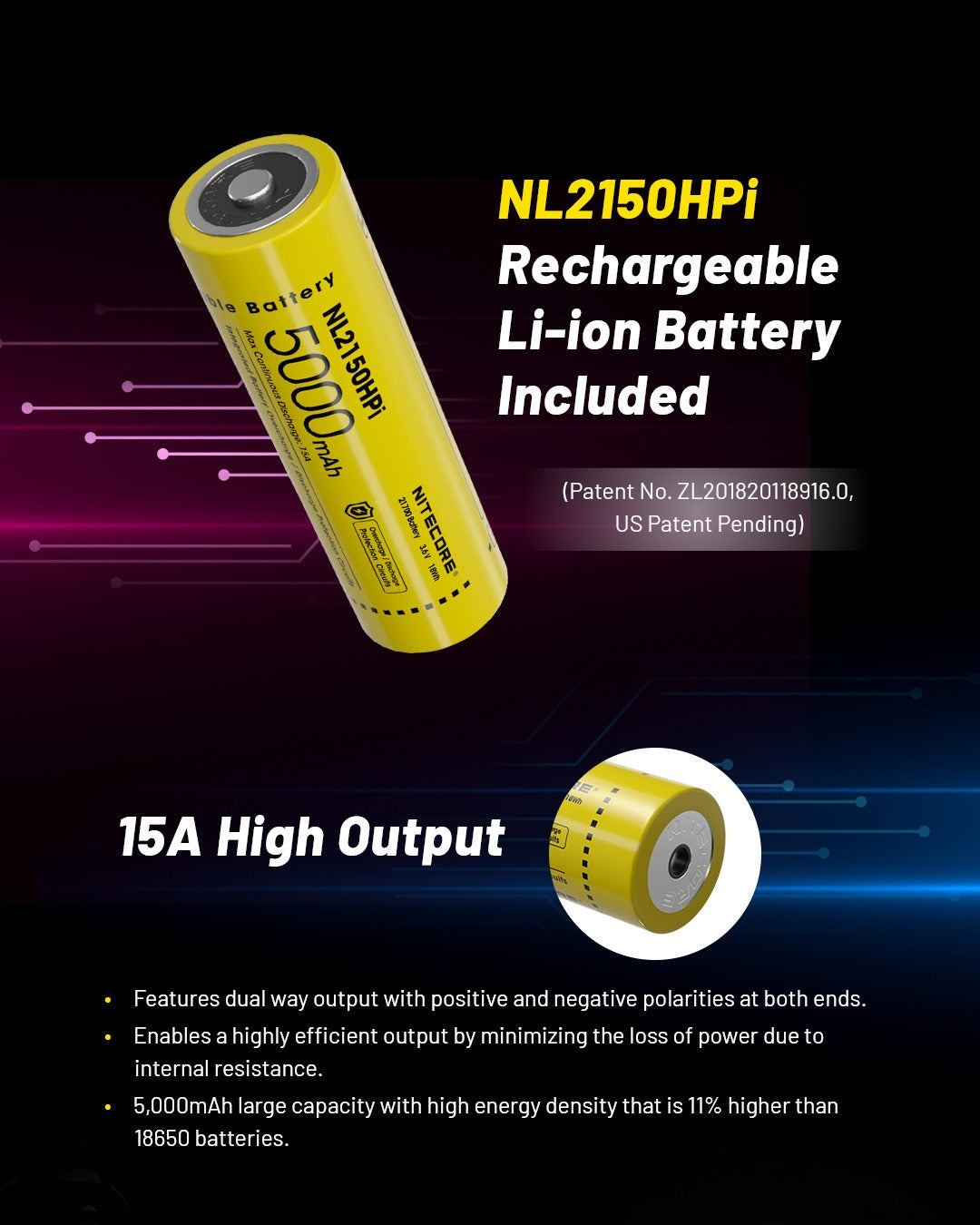 Battery Requirements Only compatible with NITECORE 21700 i-Series batteries with an output over 15A. NOT compatible with conventional 21700 / 18650 batteries and CR123 / RCR123 batteries. If you need more than the 1 included battery, click here.