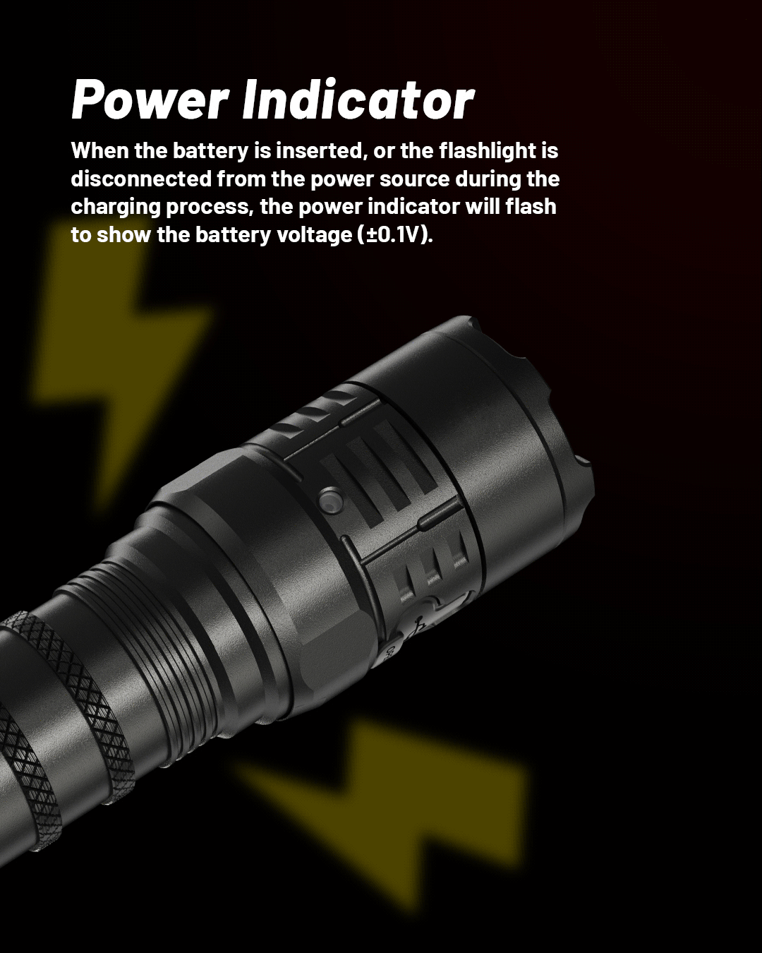 BUILT-IN QUICK CHARGE PORT - 3h50min full charge with a 5000mAh battery. This is the fastest built-in USB-C port charger ever seen on a flashlight.
