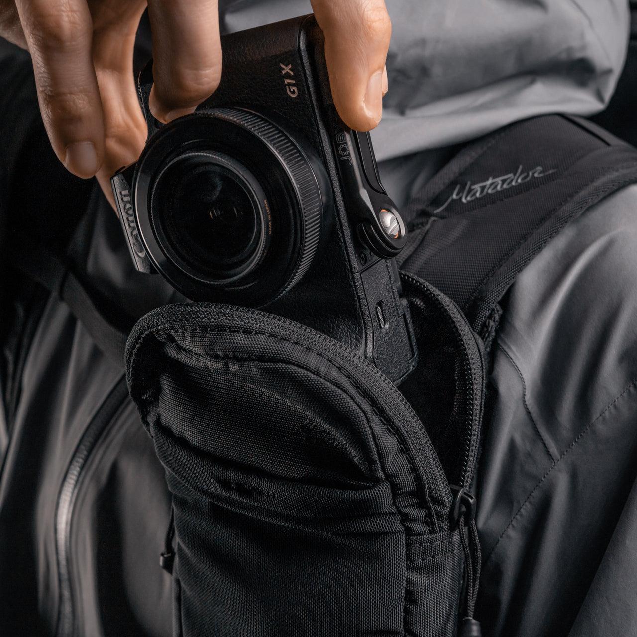 The ingenious shoulder strap accessory that puts your essentials within instant reach—no pack removal required.