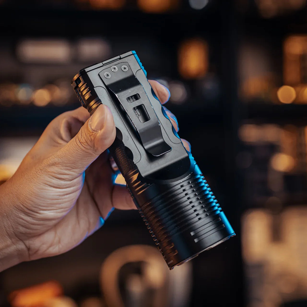Dual Switch One-Handed Operation - Weighing at just under 430g it's easy to use over several hours without feeling fatigue. The large dual paddle switch provides instant turbo on one side and instant strobe on the other. The mode switch is used to cycle through brightness settings while the light is on including the dedicated floodlight mode, or spotlight mode. The perfect light for any situation.