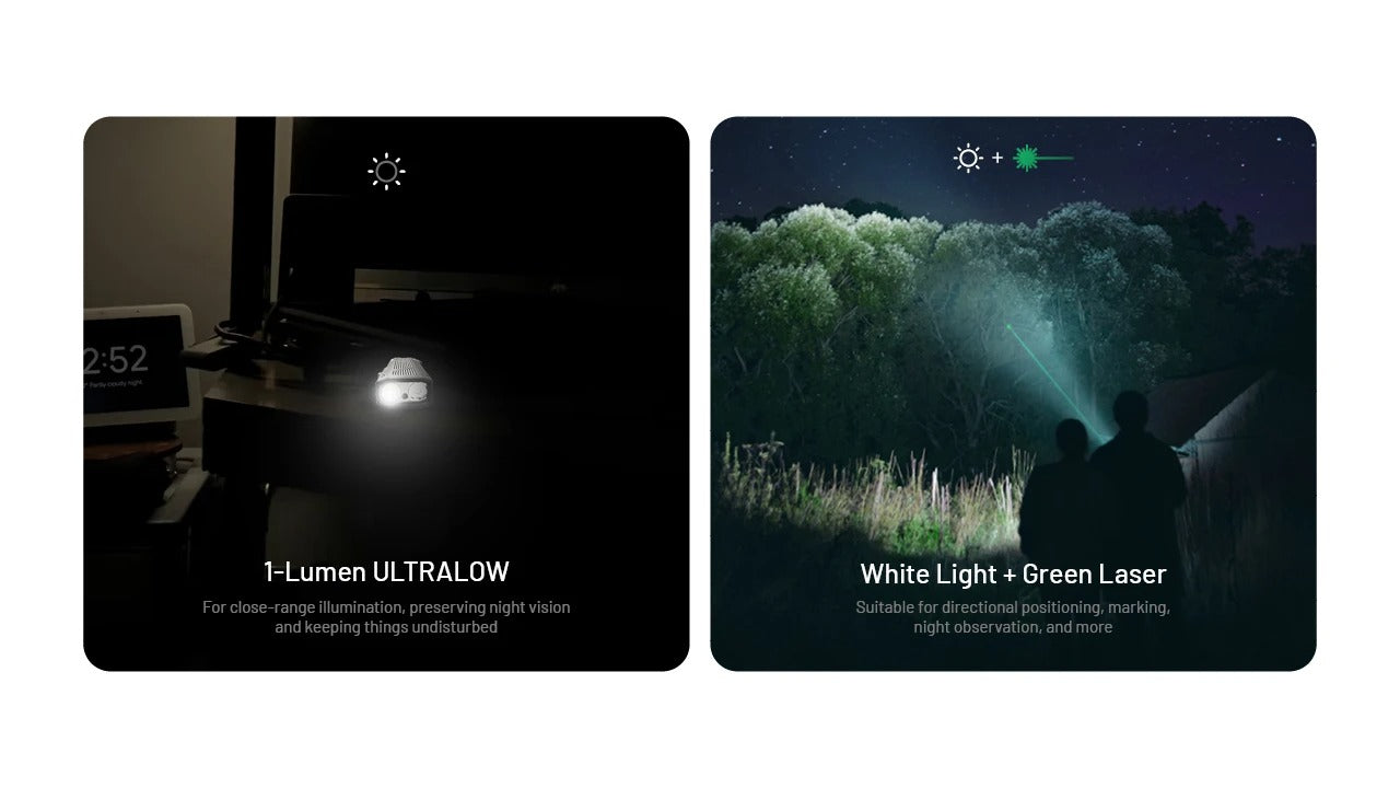 - 4 white light levels plus ULTRALOW mode for extended runtime