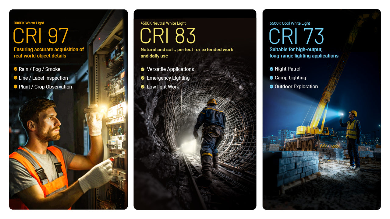 Color Temperatures 6,500K (CRI 73) / 4,500K (CRI 83) / 3,000K (CRI 97)