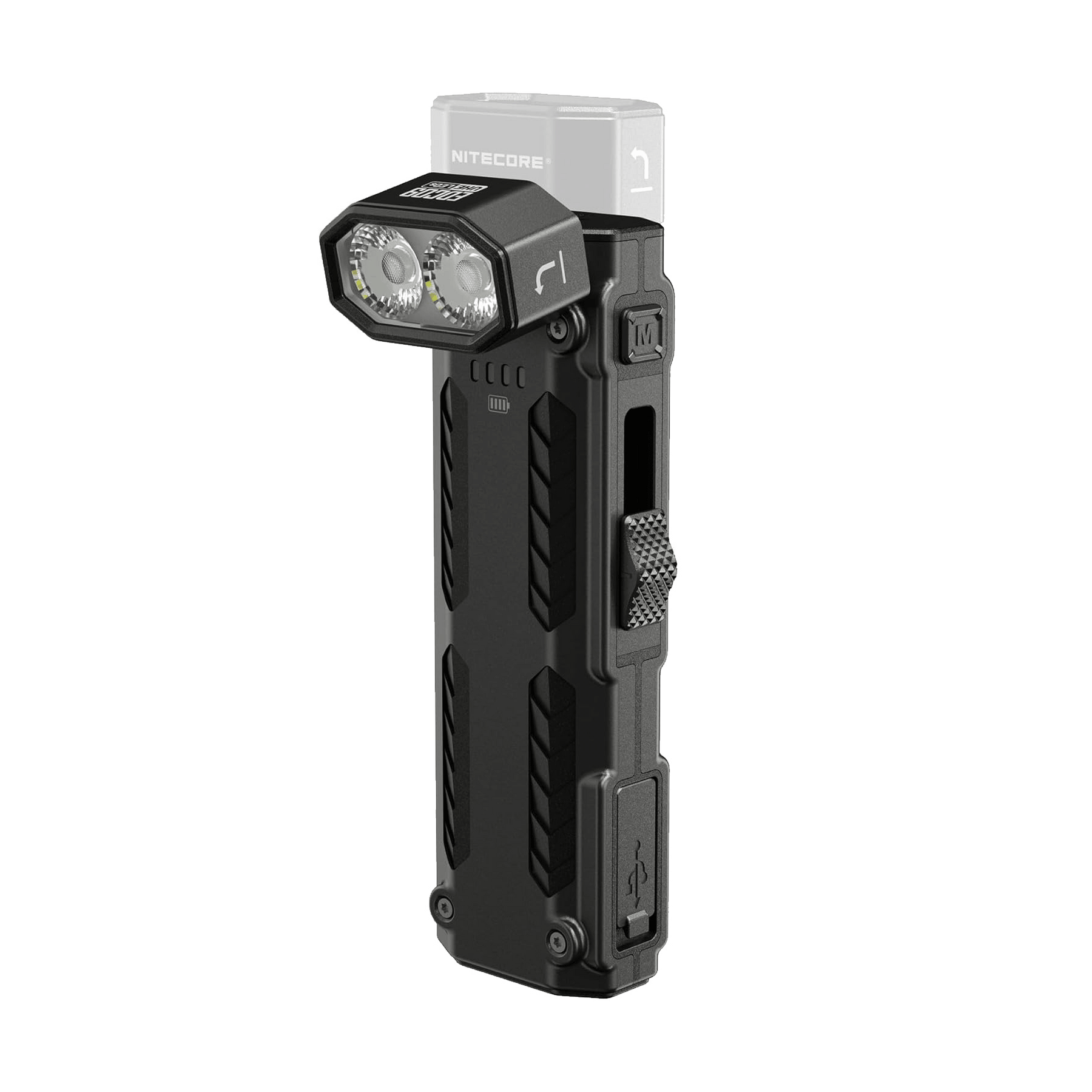 Cable from your pocket power bank to the EDC09, light operates normally while charging. For 12-hour shifts, the Nitecore NB AIR (3,300mAh) triples your runtime. The NB PLUS (5,600mAh) gives you five times the built-in capacity.