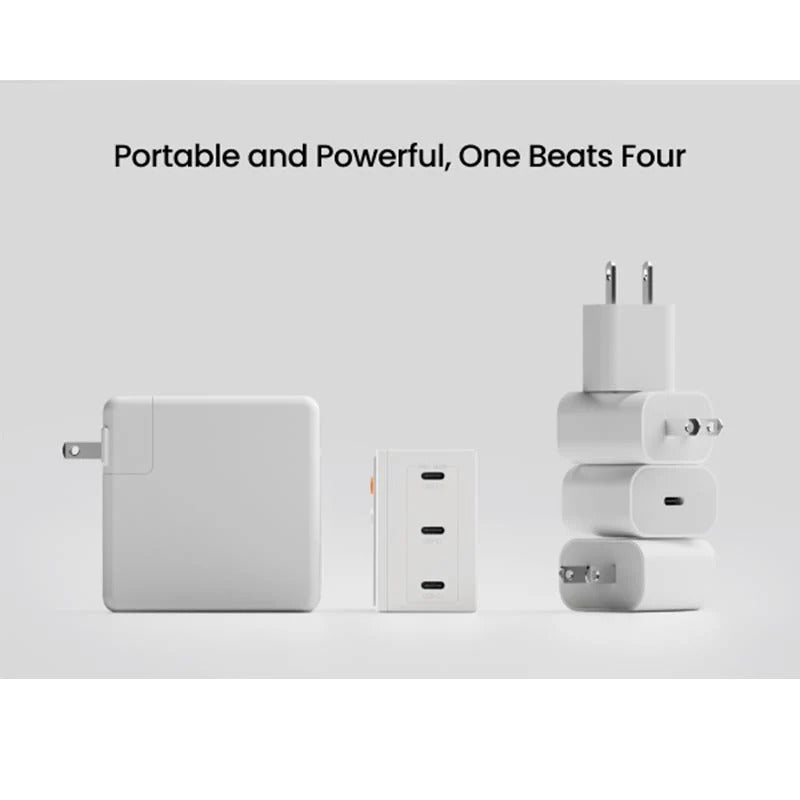 SMART POWER DISTRIBUTION - Plug in your MacBook alone and it gets the full 140W. Add your phone and the charger automatically splits to 100W+30W. Connect a third device and it redistributes to 67W+30W+30W or 45W+45W+30W based on what each device needs.